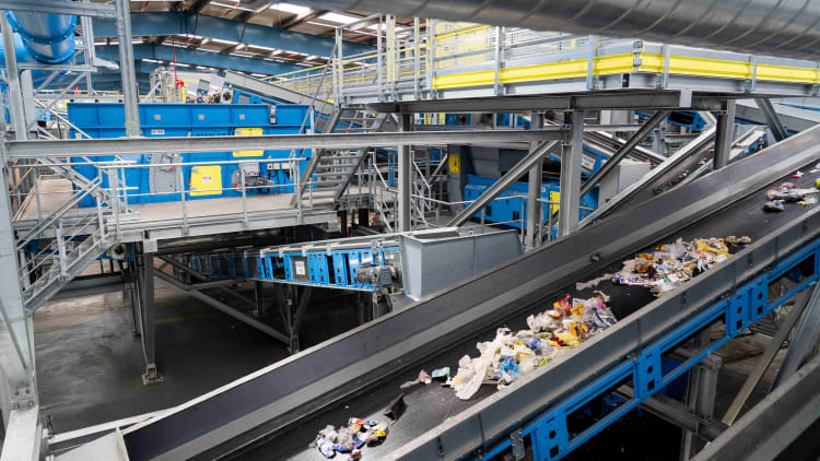 The input stream is fed into the system via an automatic feeder and a pre-shredding stage, the purpose of which is to open bags and loosen the waste stream. The material then passes to a trommel, which separates it into three size fractions. Each of these fractions is subsequently processed independently using a combination of Stadler ballistic separators, magnetic and inductive separators, and high-performance NIR optical sorters.